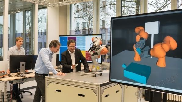 西門子——西門子中央研究院近日在慕尼黑演示了雙臂機(jī)器人的一部分,借助人工智能的高度自動(dòng)化,該機(jī)器人無需編程即可自主分工協(xié)作,用于產(chǎn)品制造。西門子中央研究院Kai Wurm博士表示,“我們只需告訴機(jī)器人,把某個(gè)部件安裝到導(dǎo)軌上,它就會(huì)執(zhí)行這個(gè)操作。”作為一個(gè)簡(jiǎn)化的例子,這項(xiàng)任務(wù)描述了“單件定制化生產(chǎn)”的內(nèi)涵。其中涉及加工或組裝含有不同部件的多樣化產(chǎn)品。機(jī)器人從關(guān)聯(lián)的軟件模型中獲取制造產(chǎn)品的相關(guān)信息。傳統(tǒng)的機(jī)器人無法理解這種CAD/CAM(計(jì)算機(jī)輔助設(shè)計(jì)和制造)模型,但新的機(jī)器人原型可以做到。從某種意義上說,這就好像機(jī)器人能夠理解不同的語言,從而不必對(duì)其運(yùn)動(dòng)和工藝進(jìn)行編程。