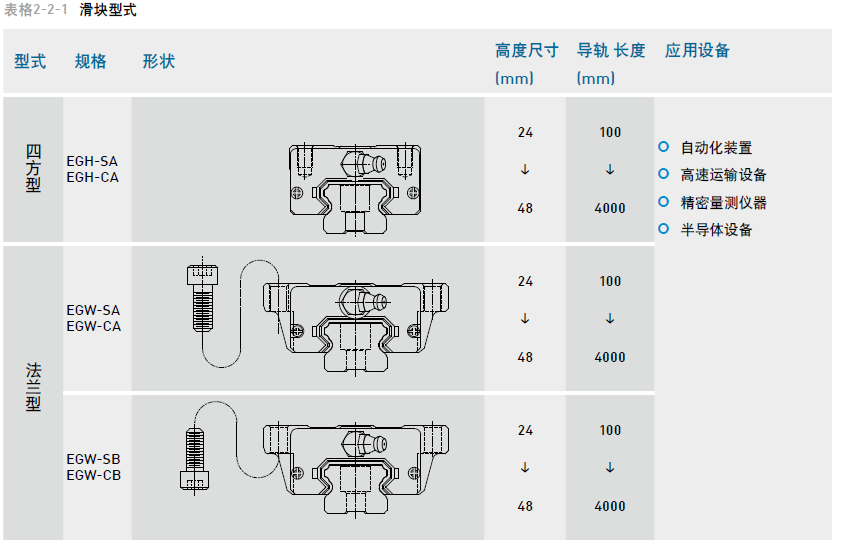 EG系列提供法蘭型及四方型兩種直線導(dǎo)軌。