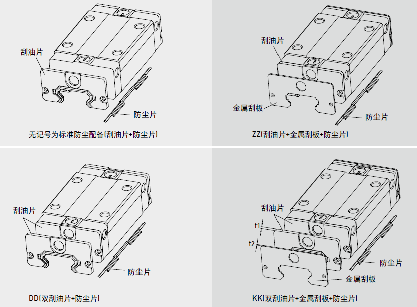 阻止加工鐵屑或塵粒進(jìn)入滑塊里面,破壞珠道表面而降低直線導(dǎo)軌壽命。