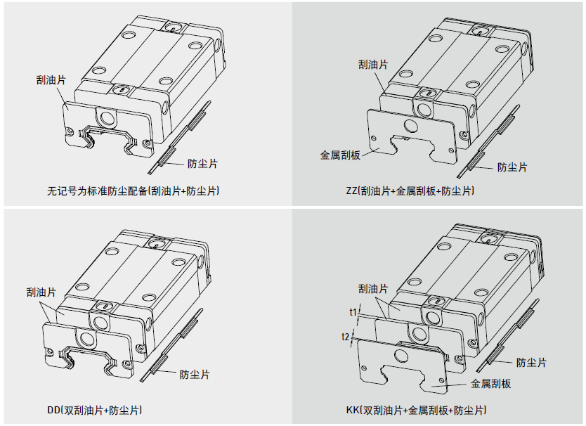 阻止加工鐵屑或塵粒進入滑塊里面,破壞珠道表面而降低直線導(dǎo)軌壽命。