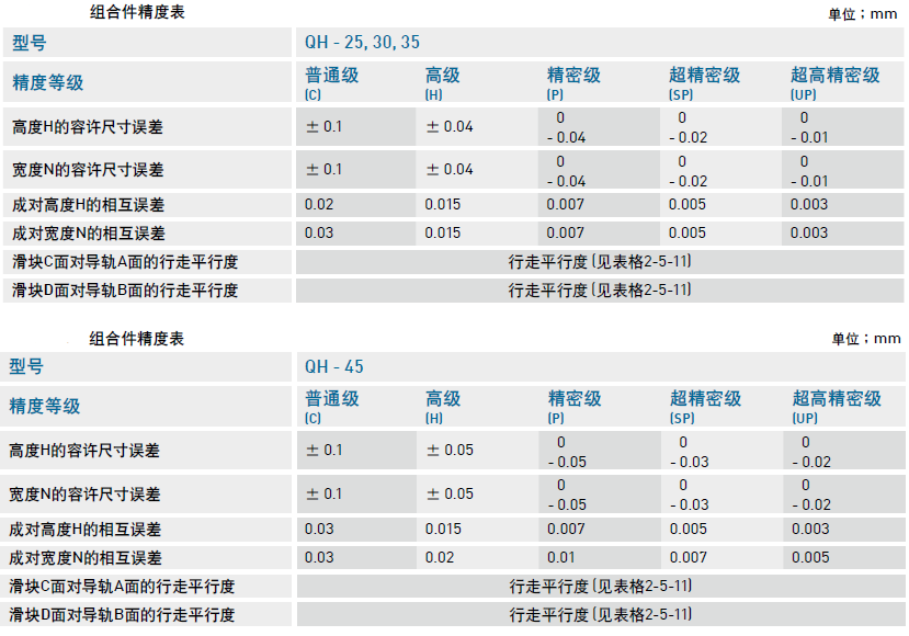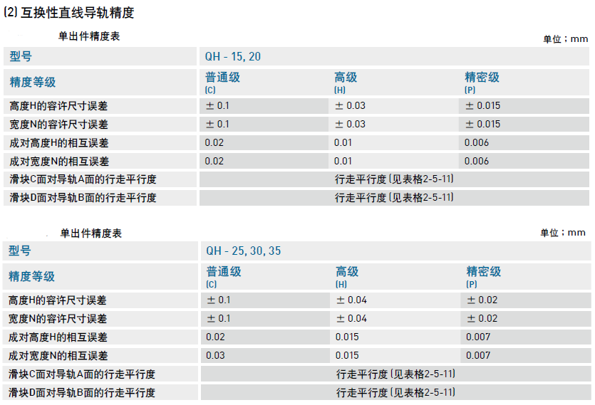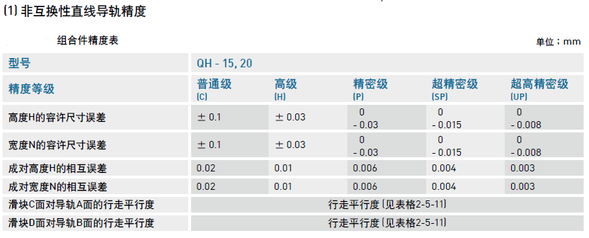 靜音式重負(fù)荷型滾珠直線導(dǎo)軌QH系列精度等級(jí)