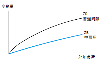 預(yù)壓力是預(yù)先給與鋼珠負(fù)荷力,亦即加大鋼珠直徑,利用鋼珠與珠道之間負(fù)向間隙給與預(yù)壓,此舉能提高直線導(dǎo)軌的剛性及消除間隙;以上圖來(lái)解釋,提高預(yù)壓力可增加直線導(dǎo)軌剛性。但小規(guī)格建議選用輕預(yù)壓以下預(yù)壓,以避免因預(yù)壓選用過(guò)重降
