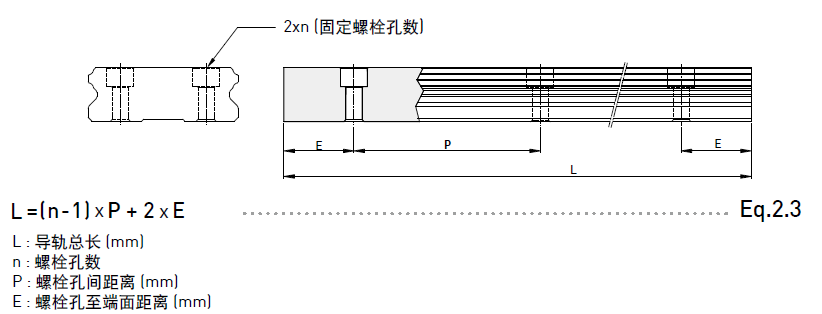 2. 標準端距最大長度是指左、右端距皆為標準端距之導軌最大長度。